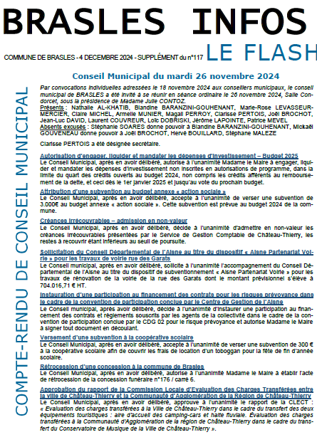 Compte-rendu du Conseil municipal du 26 novembre 2024