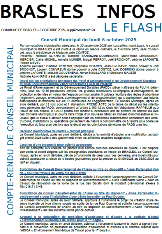 Compte-rendu du Conseil municipal du 6 octobre 2025