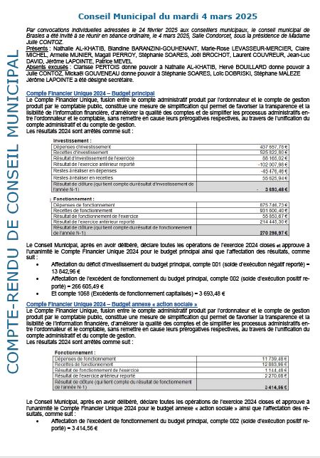 Compte-rendu du Conseil municipal du 25 mars 2025