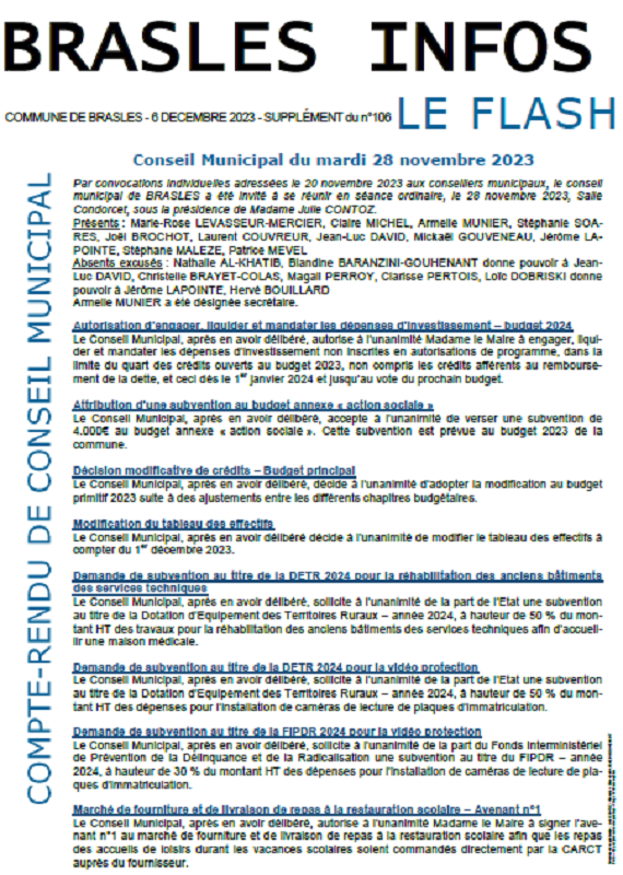 Compte-rendu du Conseil Municipal du 28 novembre 2023