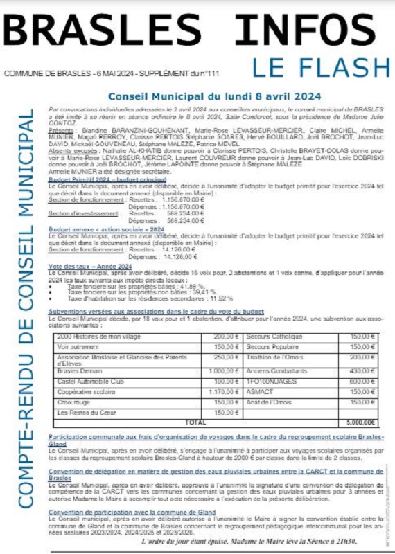 Compte-rendu du Conseil Municipal du 8 avril 2024