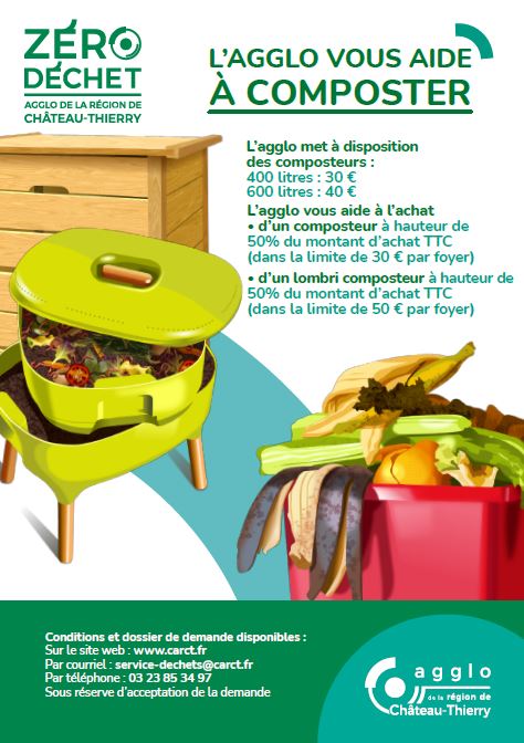 Si vous vous avez acheté un composteur en magasin, sur présentation d’une facture de moins de 6 mois, l’Agglomération prend en charge 50% de la valeur d’achat TTC d’un composteur, plafonnée à 30€. L’aide est limitée à 2 composteurs par foyer.