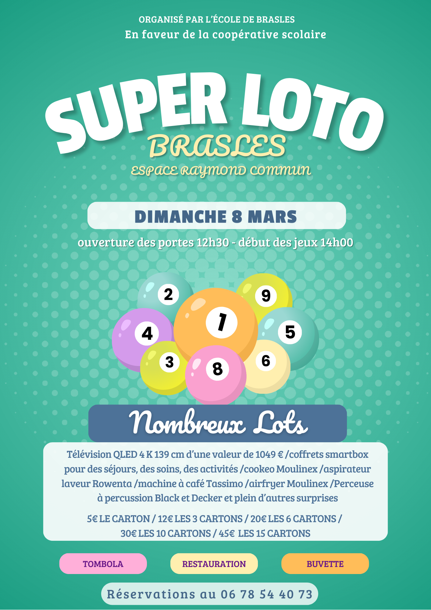Accueil Commune de BRASLES > Actualités : Super loto de l’école dimanche 8 mars 2026